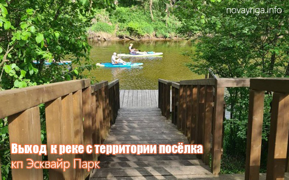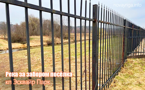 Между забором поселка и рекой вдоль реки большая широкая луговая полоса, которая однозначно подойдет для собачников и просто любителей пройтись вдоль реки.