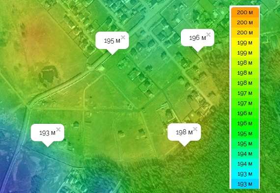 Вся территория поселка имеет уклон в сторону «от леса». Но уклон несущественный.