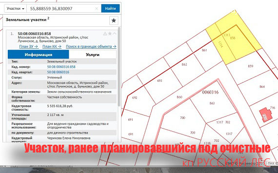 Сейчас участки, которые планировались под очистные выставлены на продажу.