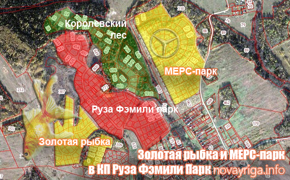 Территория посёлка разделена на 4 квартала: Руза Фэмили Парк, Королевский лес, Золотая рыбка и МЕРС-Фэмили-парк.