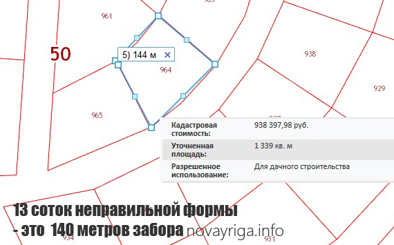 Для понимания, у участка 13,5 соток периметр около 140-150 метров. При цене 10 тыс за метр общая стоимость составит более 1 млн руб.