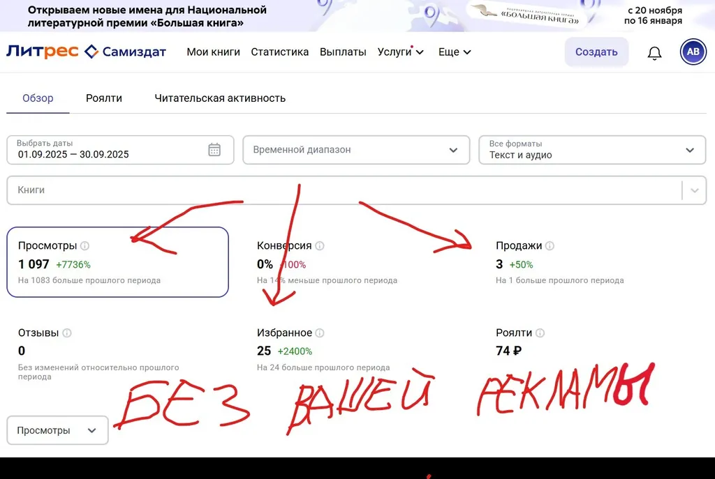 Мой печальный опыт применения платных услуг рекламы от «Литрес» в помощь авторам.